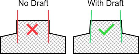 Moulds need to be designed with edges in a way that allows parts to be released freely where the angles on all surfaces are not parallel. Small areas can have no draft but generally this makes removing parts more difficult.