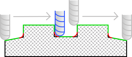 There is a tool reach limitation on ridges facing down because of our minimum radius 25” ball nose bit. This means that the cutter can’t reach areas under the size of this radius. Outer edges facing up are reachable and will be cut with good accuracy.